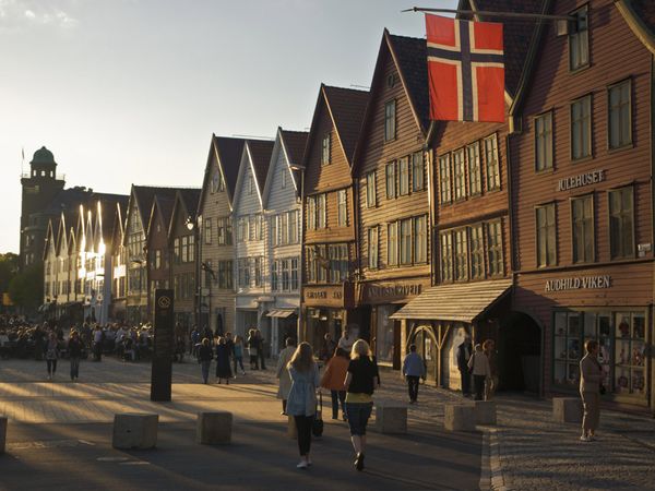 ბრიგენის ნავმისადგომი. ტურისტები დასეირნობენ ქალაქ ბერგენში და ათვალიერებენ ბრიგენის ნავმისადგომსა და საუკუნეების ხნის სახლებს. ნორვეგიის სიდიდით მეორე ქალაქი მთებითაა გარშემორტყმული, რის გამოც ზოგჯერ ეძახიან “კარიბჭეს ფიორდებისკენ”.
