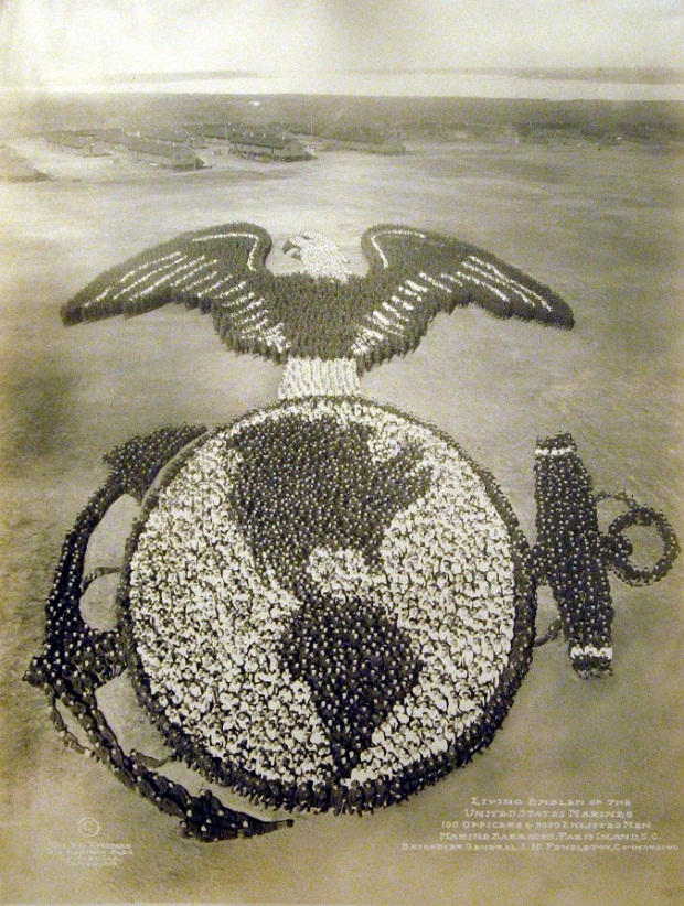 I მსოფლიო ომის დასრულების შემდგომ, 1918 წლის ივლისიდან მოყოლებული ჩიკაგოს ერთ-ერთი სტუდიის ფოტოგრაფები – არტურ მოლი და ჯონ ტომასი – ათასობით ამერიკელს უყრიდნენ თავს და სხვადასხვა ფორმას აღებინებდნენ. ეს ფორმა ზოგჯერ თავისუფლების ქანდაკება იყო, ზოგჯერ კი დროშა ან სხვადასხვა სიმბოლოები. ეს ის დროა, როცა არათუ ფოტოშოპი, არამედ კომპიუტერული გრაფიკაც კი არ არსებობდა იდეის დონეზე.