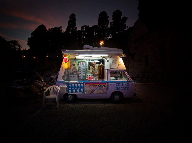 ნაყინის გამყიდველი, საბერძნეთი. გადაღებულია საბერძნეთის კუნძულ როდოსზე. ახალგაზრდა მამაკაცი, რომელიც მანქანას ფლობს, საკურორტო სეზონის დროს ნაყინის გაყიდვითაა დაკავებული და ყველა შემხვედრს თავაზიანად ესალმება.