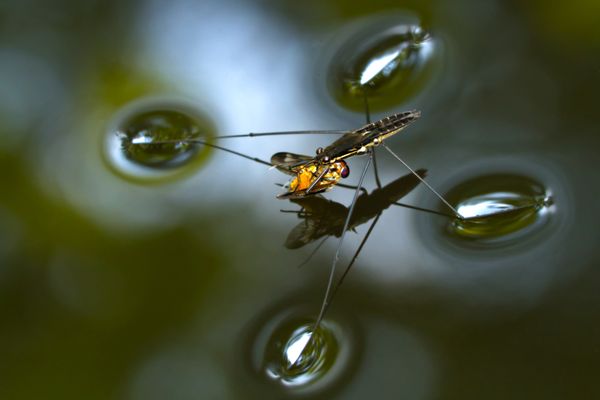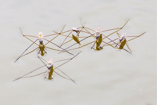 წყლის ობობას ზოგჯერ ტბის მოციგურავესაც ეძახიან. მისი 350-ზე მეტი სახეობა არსებობს Gerridae-ს მწერების ოჯახში. ისინი იყენებენ გრძელ ფეხებს, რომლებიც სხეულის სიგრძეს ორჯერ აღემატება, რათა წყლის ზედაპირზე თავი შეიკავონ და სხეულს წონასწორობა შეუნარჩუნონ. წინა მოკლე ფეხებს კი მსხვერპლის მახეში გასაბმელად ხმარობენ. სურათზეა ოკლავაჰას მდინარე ფლორიდაში და მის ზედაპირზე ორი მწერი – წყლის ობობის კლანჭებში მოქცეული უმწეო ყვითელი ბუზი. რიგ შემთხვევებში წყლის ობობა თავისიანებზეც ნადირობს.