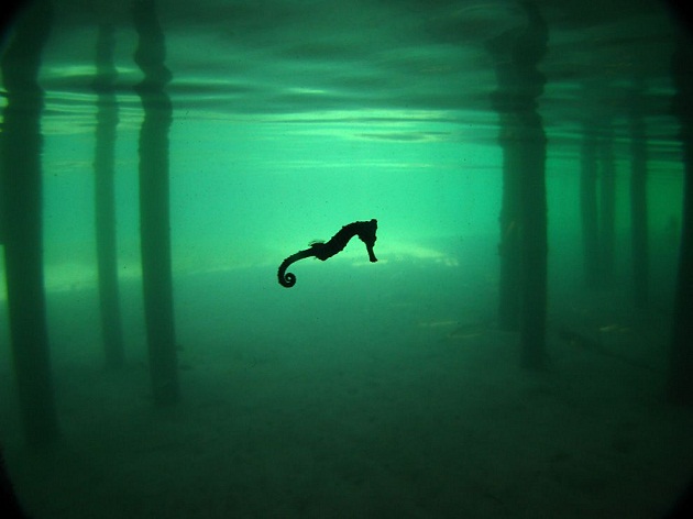 მარჯნის რიფებში მოცურავე ზღვის ცხენიჩრდილოეთ პოლუსიდან 1300 კმ-ის მოშორებით სტალაქტიტის მსგავსი ღრუბლები იდღვიბება 140 კმ/სთ სიჩქარის ქარისგან, განთიადის სინათლე კი მათ აპოკალიფსურ იერს აძლევსლიმონის ზვიგენის ნაშიერი მიცურავს მანგროს ფესვებს შორის ბაჰამას წყლებში.