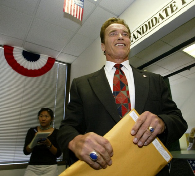 2003 წლის 7 აგვისტო: ლოს-ანჯელესის სარეგისტრაციო ოფისში არნოლდ შვარცენეგერმა საკუთარი კანდიდატურა წამოაყენა კალიფორნიის გუბერნატორის არჩევნებზე.