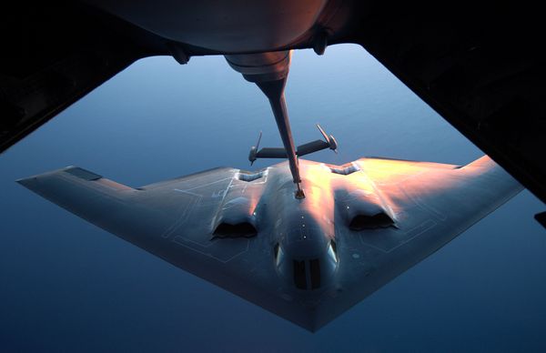 2006 წლის ივლისში ავსტრალიის ცაზე აშშ-ის საჰაერო ძალების თვითმფრინავი B-2 Spirit, იგივე სტელსის ბომბდამშენი, შუა ფრენის დროს ივსებს საწვავს KC-10 Extender-ის თვითმფრინავიდან.