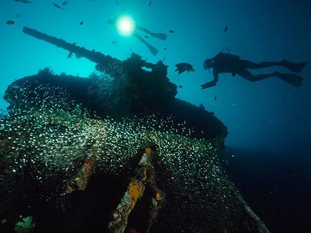 წყნარი ოკეანის კუნძულის ესპირიტუ სანტოს სიახლოვეს, წყლის სიღრმეებში მყვინთავი დაცურავს ჩაძირული გემის, “President Coolidge”-ის ზარბაზანთან. ძვირფასი საოკეანო ლაინერი 1931 წელს ააგეს, თუმცა მოგვიანებით საბრძოლო ფუნქცია მიანიჭეს II მსოფლიო ომში გამოსაყენებლად. 1942 წლის 26 ოქტომბერს კუნძულთან მიახლოებისას მას შეცდომით ჭურვები დაუშინეს და ჩაძირეს.