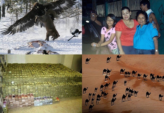 ზემოდან გადაღებულ ლამაზ სურათზე მოჩანს უდაბნოში მოსიარულე აქლემების ჯგუფის ჩრდილები. თუკი ახლოდან დააკვირდებით, დაინახავთ, რომ შავი ფერის სილუეტები არა აქლემები, არამედ ჩრდილებია. გორაკებიანი უდაბნოს ტერიტორია, მანათობელი მზე და ფოტოაპარატის პოზიცია ერთგვარ ოპტიკურ ილუზიას ქმნის. ფოტო გადაღებულია ჯორჯ სტეინმეცის მიერ, დასახელდა 2005 წლის ერთ-ერთ საუკეთესო ნამუშევრად და “National Geographic”-ის ჟურნალის გარეკანზეც მოხვდა. სტეინმეცი ცნობილია სამეცნიერო ტიპის ფოტოების გადაღებით. უნიკალური კადრების დასაჭერად ის მსოფლიოს გარშემო მოგზაურობს და დახეტიალობს შორეულ უდაბნოებსა და სხვა მიუწვდომელ ადგილებში.