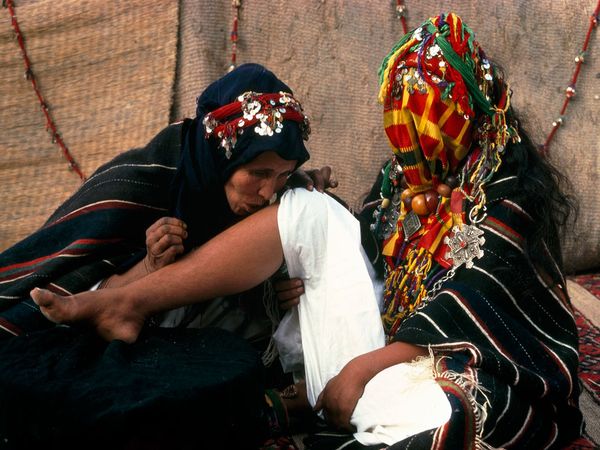 იმისთვის, რომ წყალობა გადასცეს, ბერბერის ტომელი დედა მუხლზე კოცნის ქალიშვილს, რომელიც მასზე ორჯერ უფროს მამაკაცს მიჰყვება ცოლად. დღის განმავლობაში ლხენაა და ქეიფი, ღამით კი სიმღერა და ცეკვა. ბერბერებში სასიყვარულო ორგანო ღვიძლია და არა გული, ამიტომ შეწყვილებისას ამბობენ, რომ პატარძლის ღვიძლი მის საქმროს ეკუთვნის.