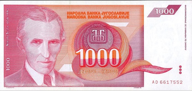 ტესლას გამოსახულება ფულად ერთეულებზე: