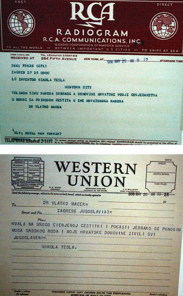 1936 წელს პოლიტიკოს ვლადკო მაჩეკის მიერ გამოგზავნილი დაბადების დღის მისალოცი ტელეგრამის საპასუხოდ ტესლამ განაცხადა, რომ ის ერთნაირად ამაყობდა სერბული წარმოშობითა და ხორვატიული სამშობლოთი. თანამედროვე ეპოქაში ამ ციტატას ხშირად უკეთებენ პერეფრაზირებას ხორვატიისა და სერბეთის ერთიანობის მომხრეები.