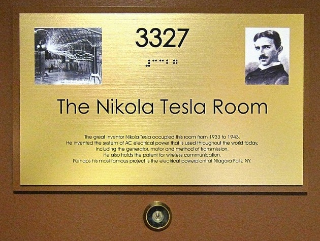 საპატიო წარწერაა გაკეთებული ,,ნიუ-იორკერის” სასტუმროში, 3327-ე ოთახის კარებზე, სადაც ტესლა 10 წლის განმავლობაში ცხოვრობდა: