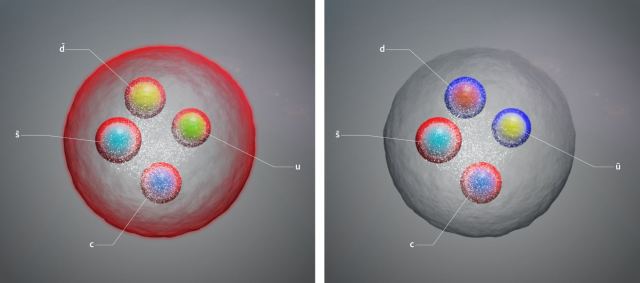ორი ახლად აღმოჩენილი ერთნაირი ტეტრაკვარკის შემადგენლობაში შედის 4 სხვადასხვა კვარკის „ორმაგად ელექტრულად დამუხტული“ კომბინაცია: მომხიბლავი კვარკი, უცნაური ანტიკვარკი, ზედა კვარკი და ქვედა ანტიკვარკი.